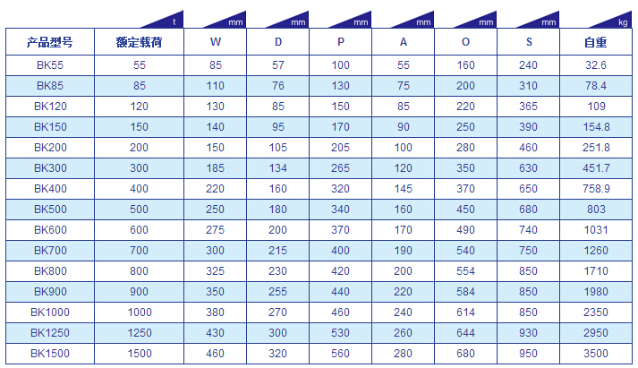 55t~300t最大试验载荷为额定工作载荷的2倍。
